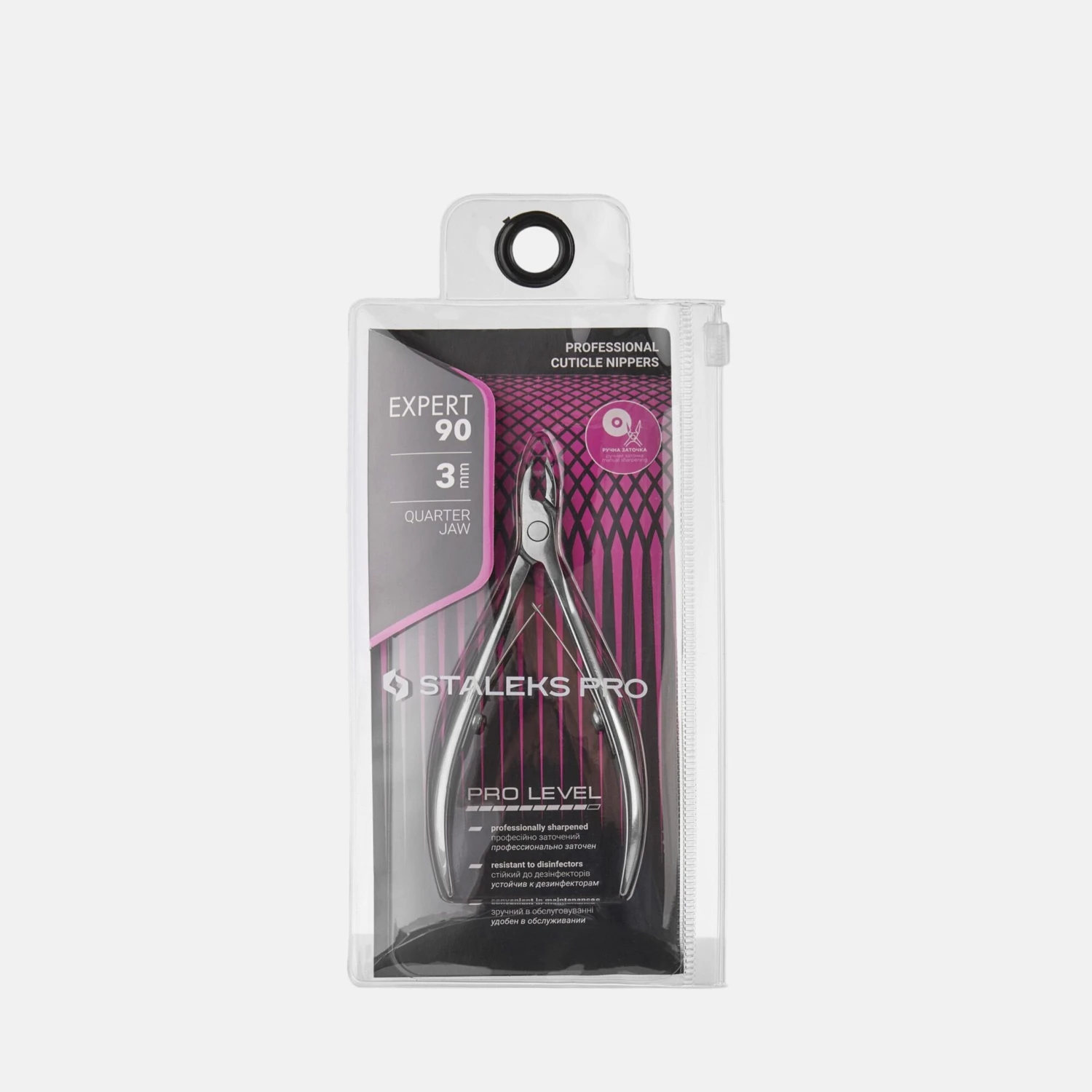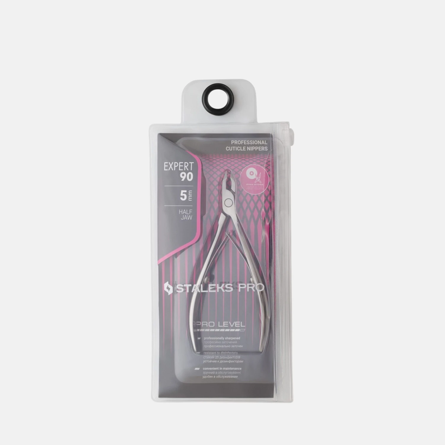 Cortacutículas de acero inoxidable AISI 420. Solo para uso profesional. Sus pequeñas hojas realizan cortes precisos y con inclinación.