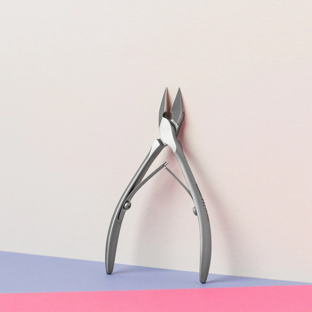 Alicates profesionales de acero inoxidable. Su diseño robusto permite cortar fácilmente uñas tanto de manos como de pies. Los cortes afilados evitan que la uña se quiebre . Su mango es curvo y suave.