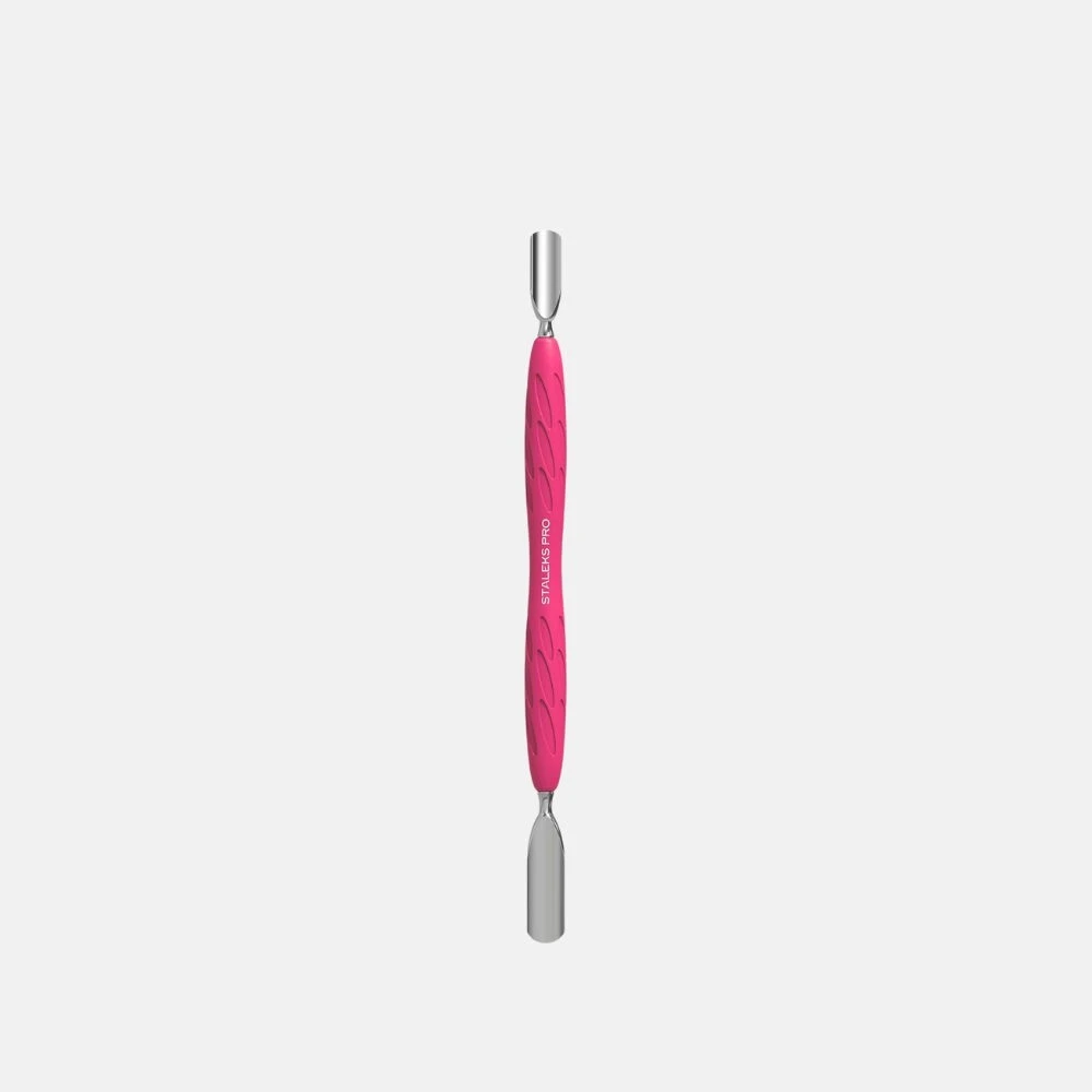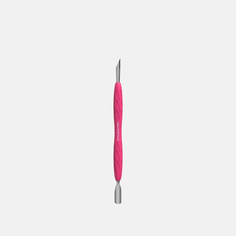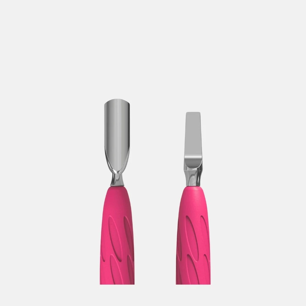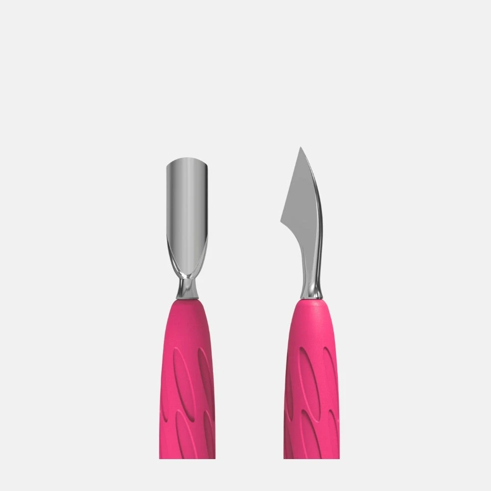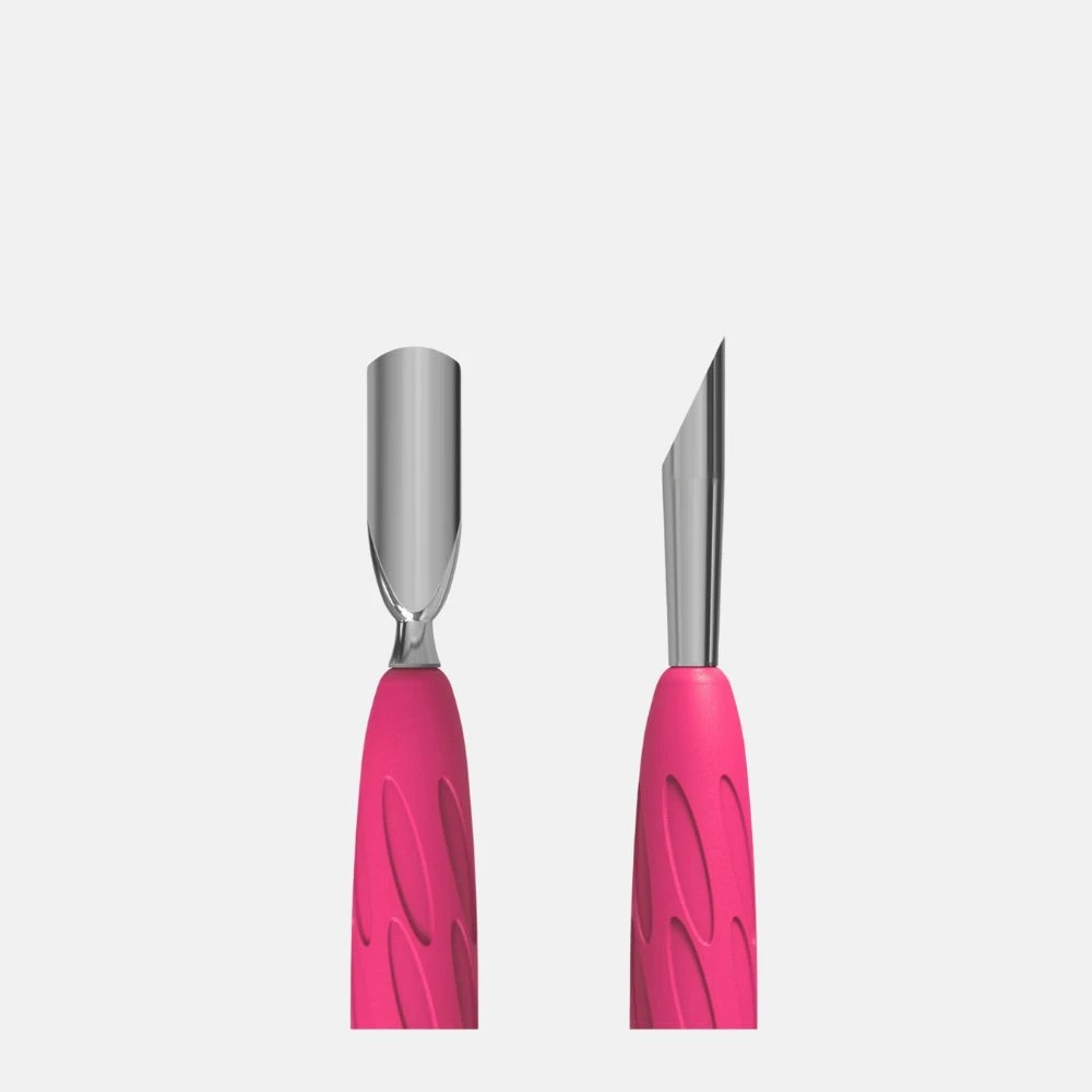 Empujador de cutícula de acero inoxidable de alta aleación para manicura y pedicura cómodo y preciso. Con su mango de silicona hipoalergénico ofrece un agarre seguro para trabajar de manera cómoda. Muy afilado y perfecto para levantar y empujar hasta las cutículas más resistentes. Elige entre las diferentes combinaciones.