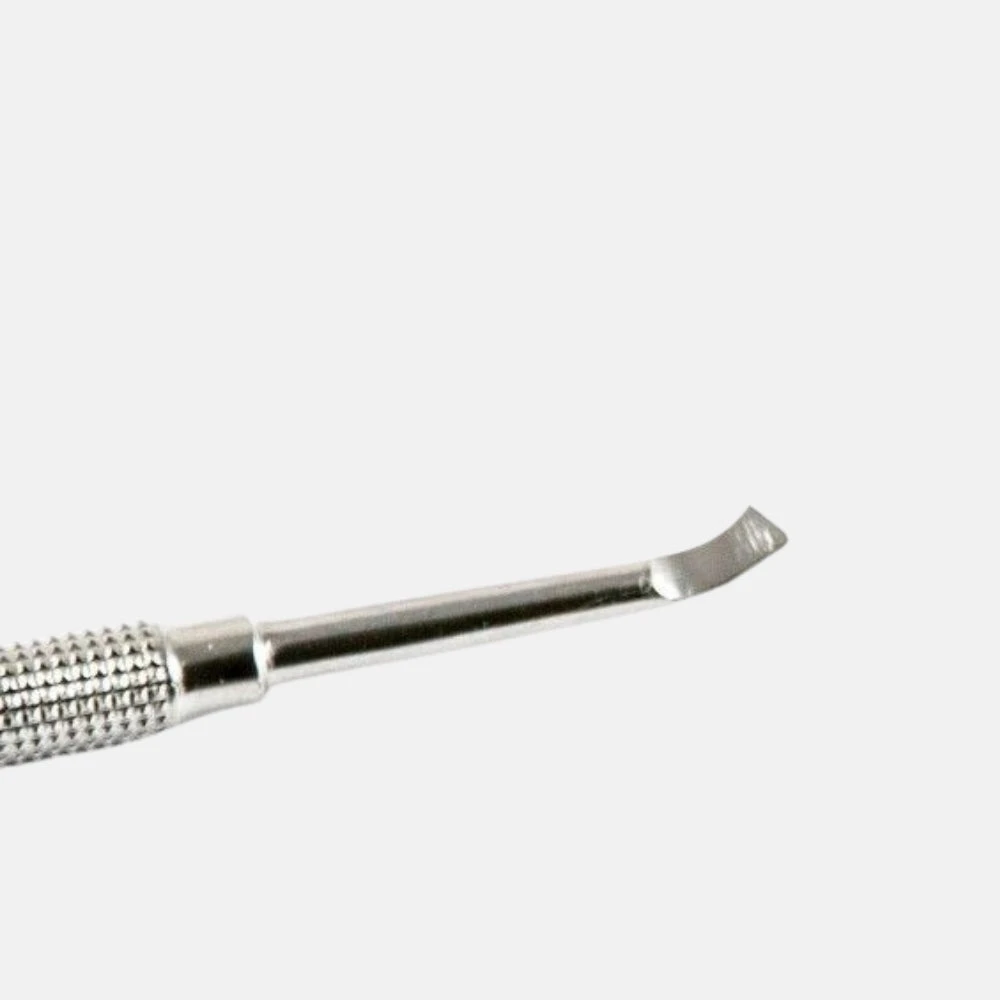 Empujador de cutícula metálico. Ergonómico, permite empujar la cutícula con facilidad.