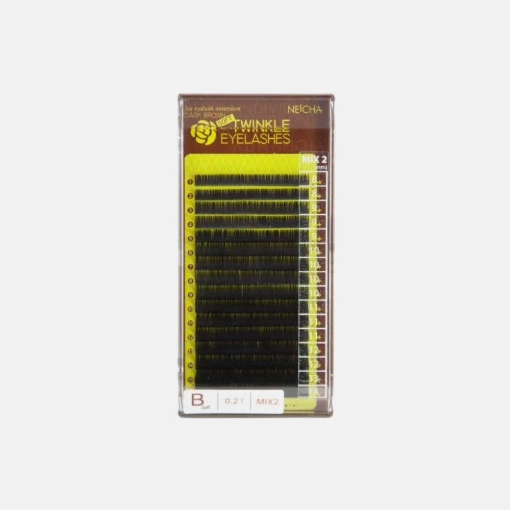Extensiones de pestañas de color Castaño Oscuro, que vienen en formato de 16 tiras, de aspecto más brillante. Las puntas de estas pestañas se estrechan dándoles un aspecto más natural y suave como las propias pestañas. Creadas con fibra de seda sintética.