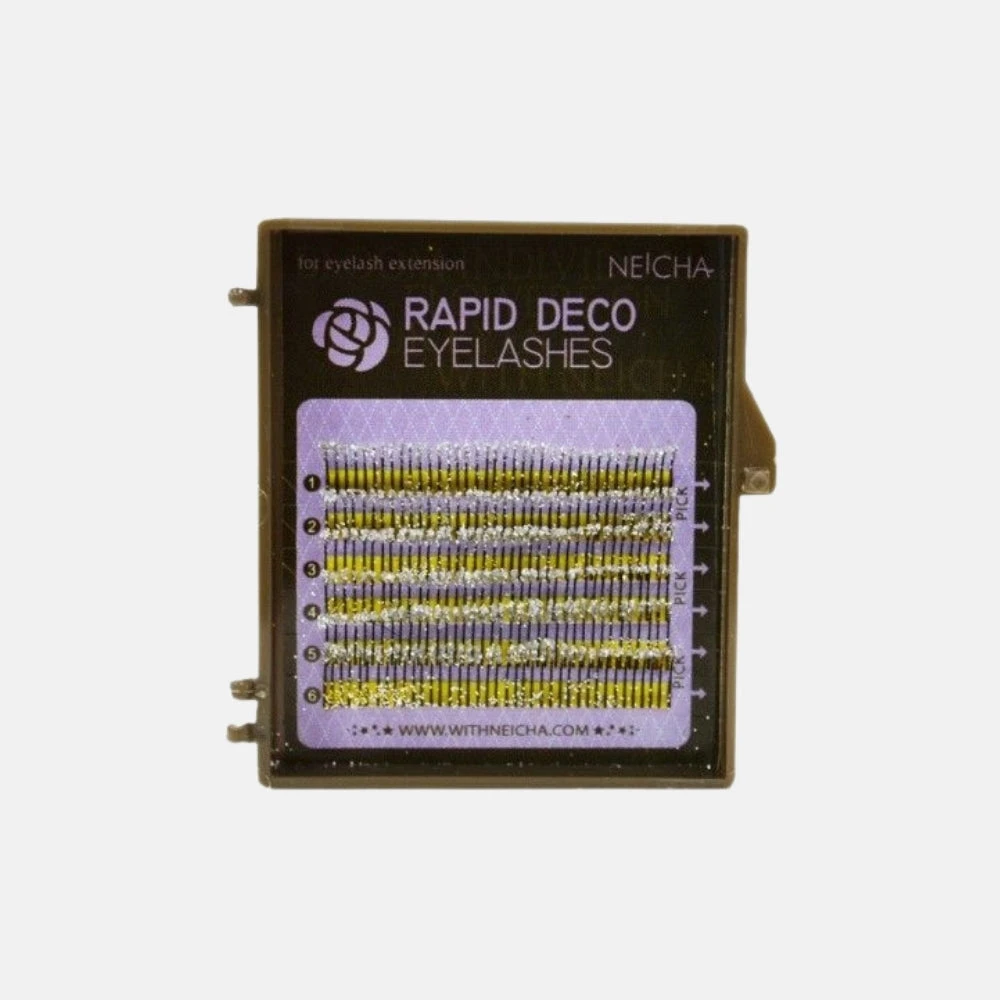 Pestañas decoradas con purpurina. Cada caja contiene 6 filas de diferentes longitudes. Estas pestañas darán un look diferente a cada uno de tus diseños de extensiones de pestañas.