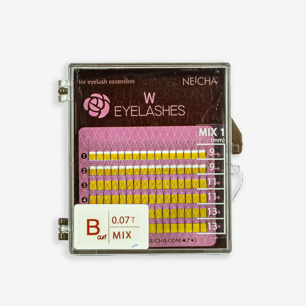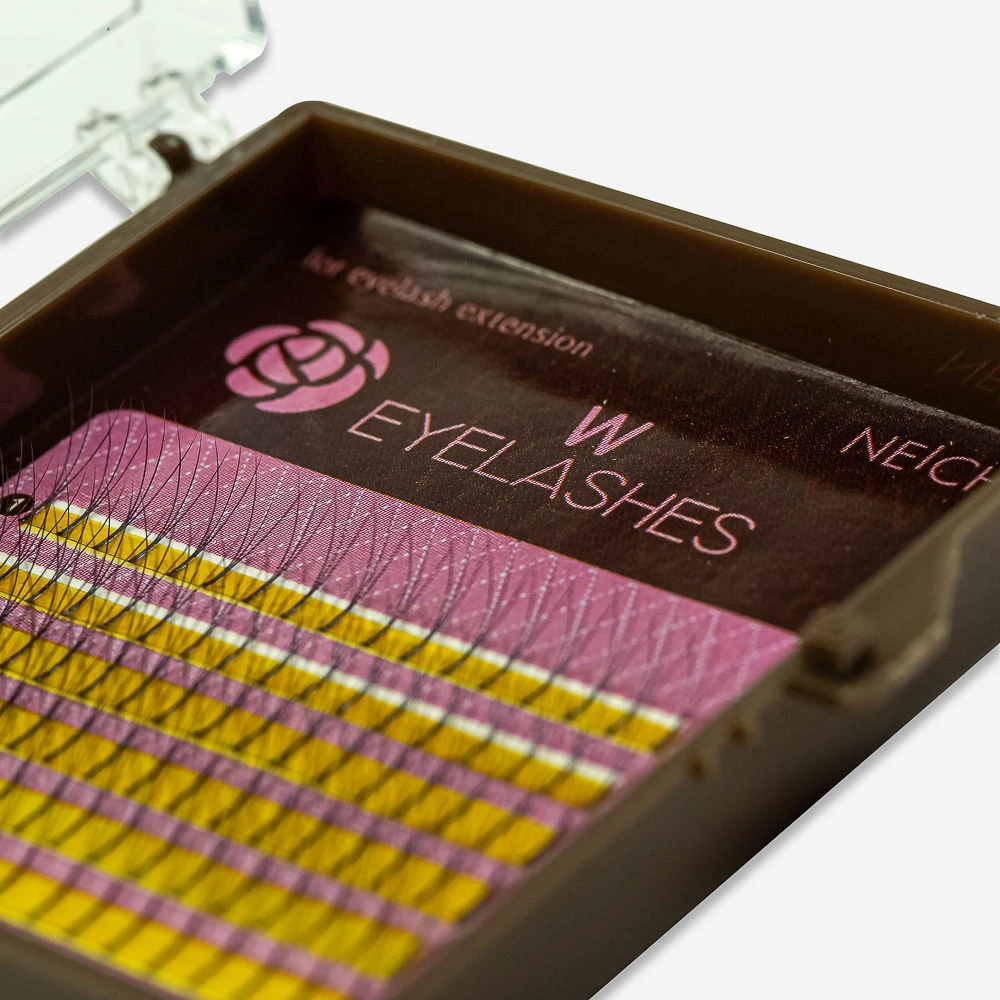 Caja con 6 filas de extensiones de pestañas de seda en forma de W, formadas por tres pestañas, permite una rápida aplicación y más volumen.