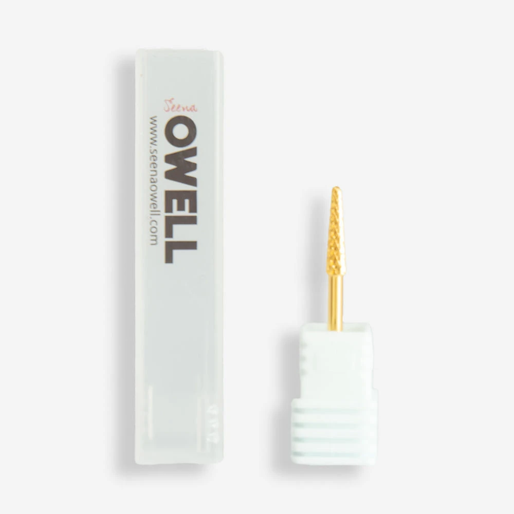 Fresa de carburo con forma de cono de uso profesional. Ayuda a tratar la cutícula, laterales de la uña y afina los contornos de las uñas construidas con acrílico, gel o acrygel.