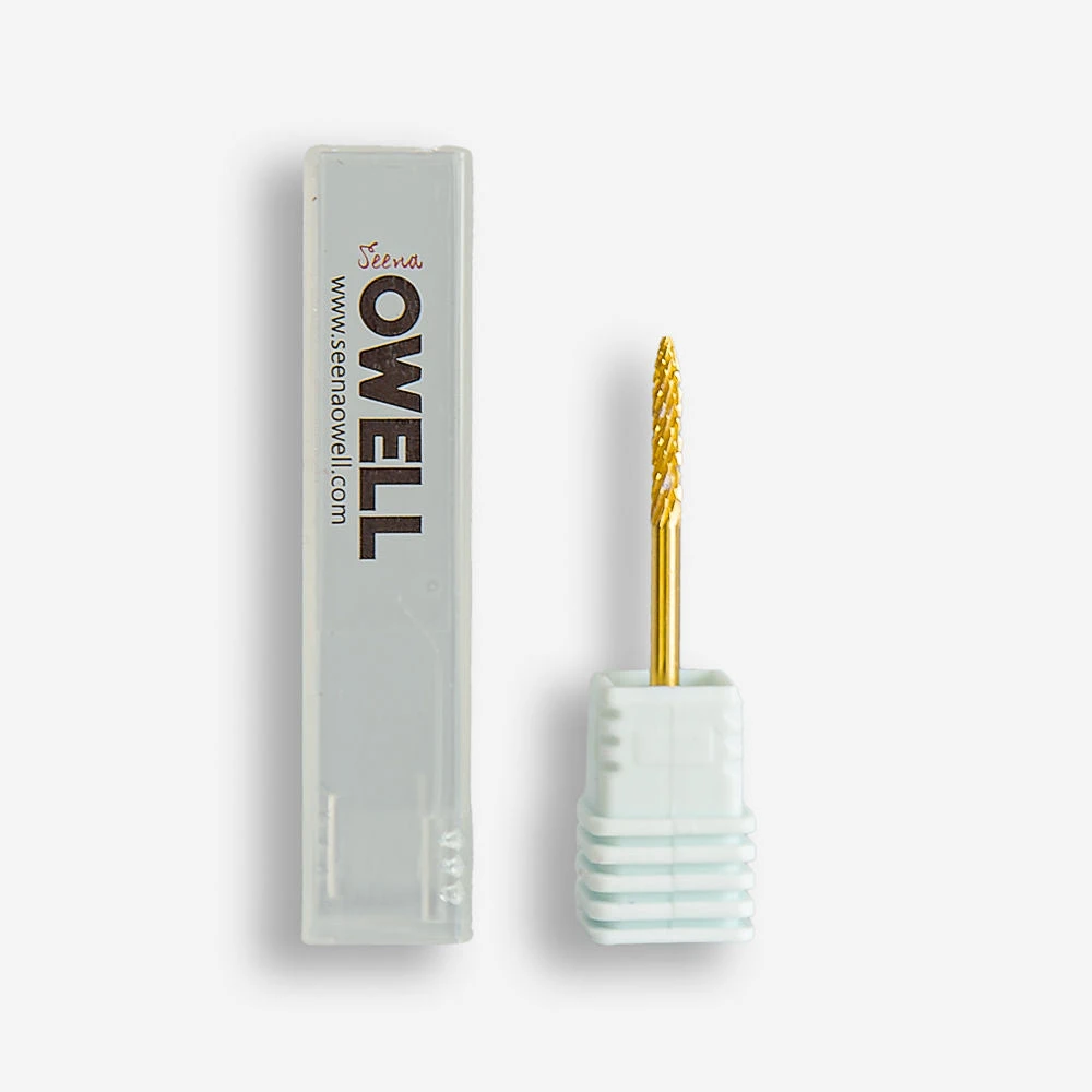 Fresa de carburo de uso profesional. Limpia la zona de la cutícula después de realizar la construcción de uñas, además, elimina y limpia el resto de producto que se queda debajo de la uña.