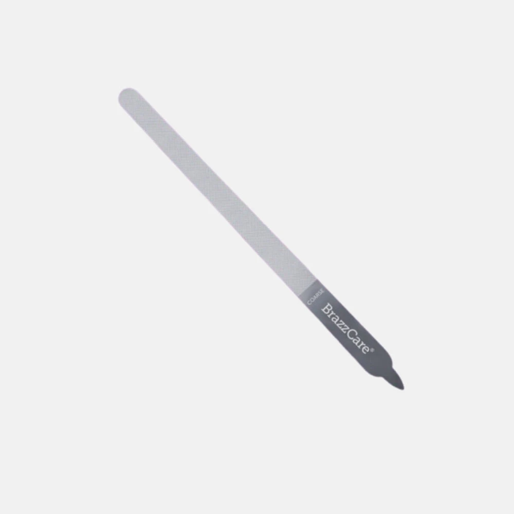 Lima profesional con dos caras, una de grano fino y otra de grano grueso. Permite darle forma a la uña sin dañarla. Fabricada en acero quirúrgico inoxidable de alta calidad, puede ser limpiada y esterilizada en autoclave. Permite hasta 500 servicios.