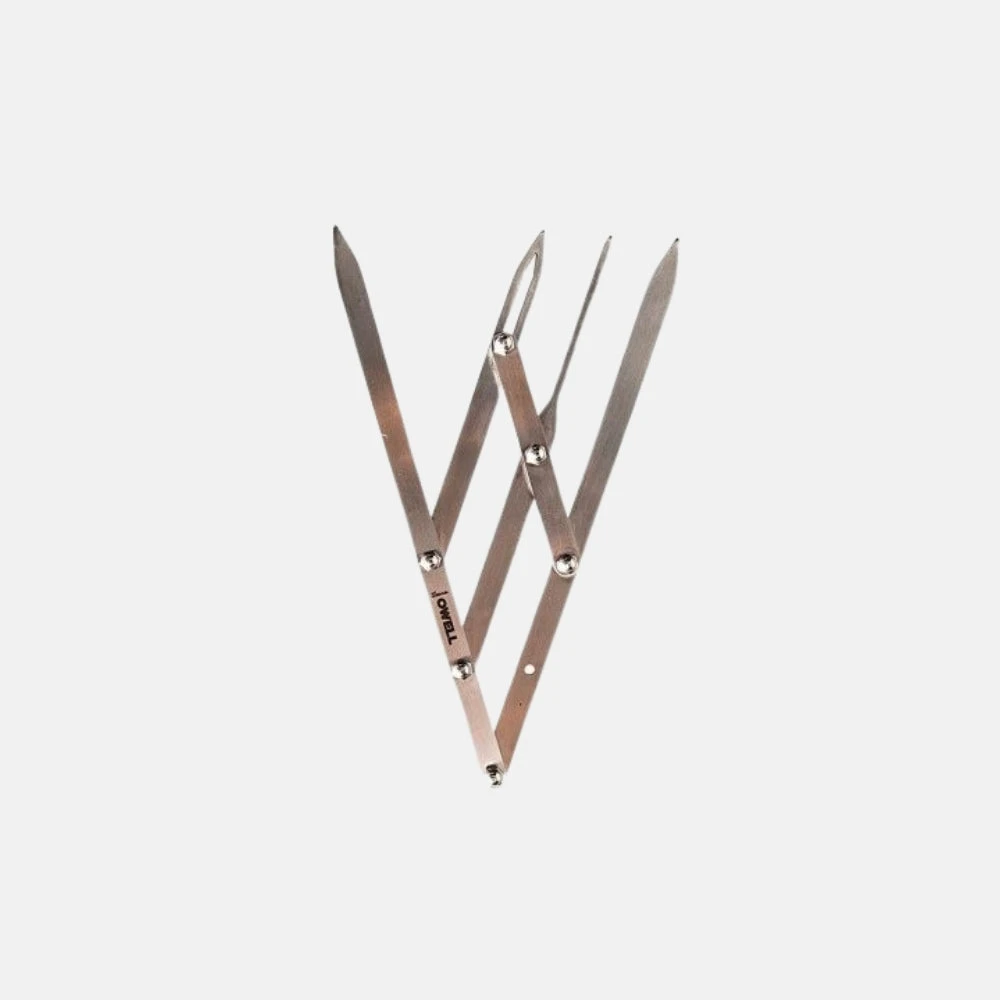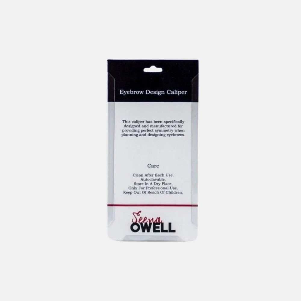 Medidor de cejas fabricado en acero inoxidable que permite realizar la medición de las distintas proporciones de las cejas con respecto a la cara.