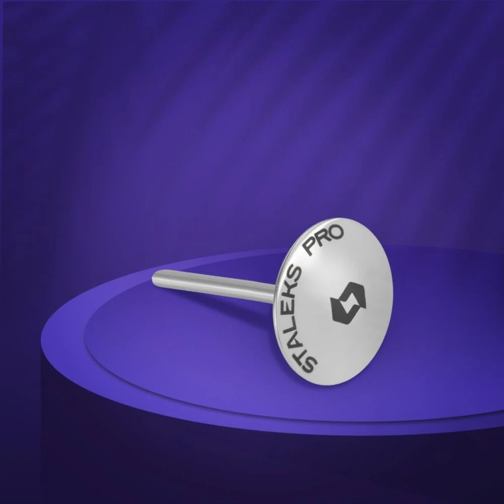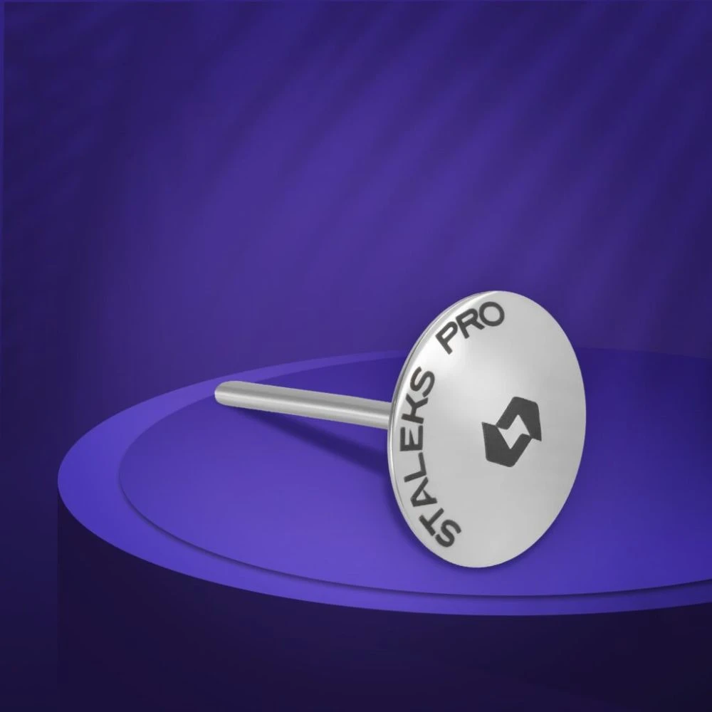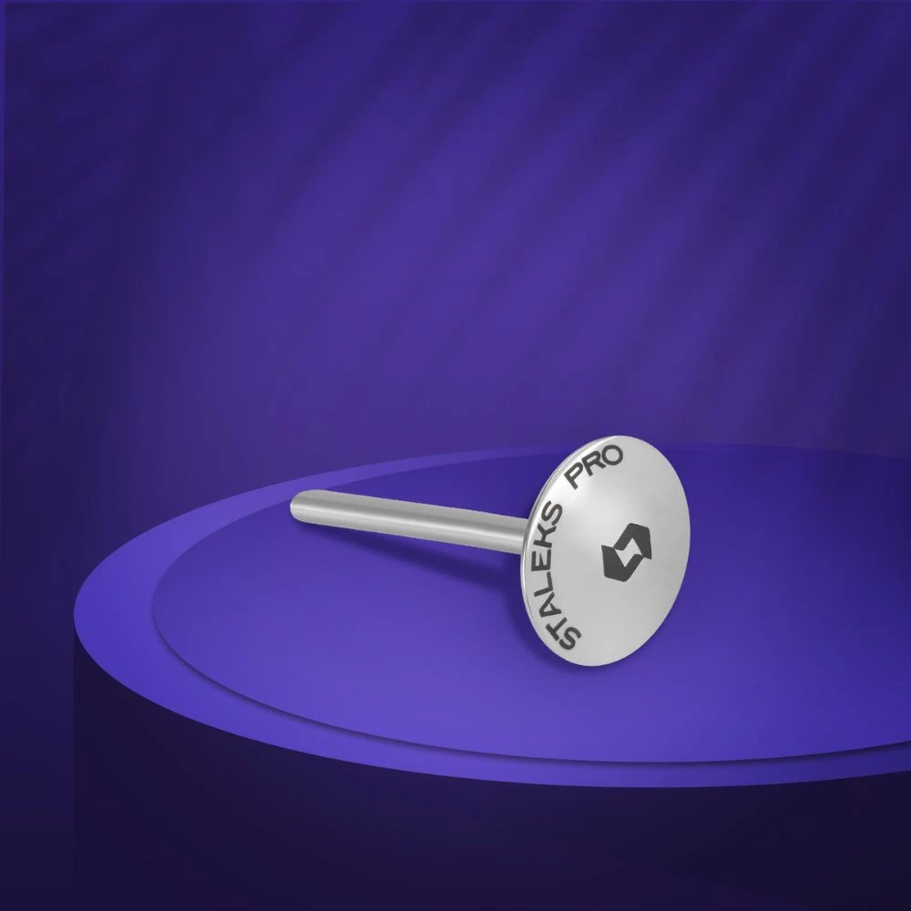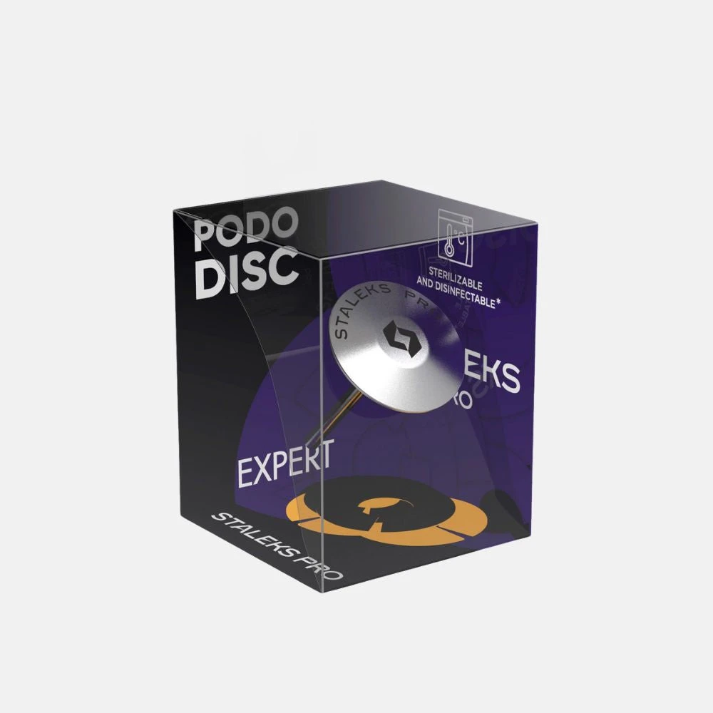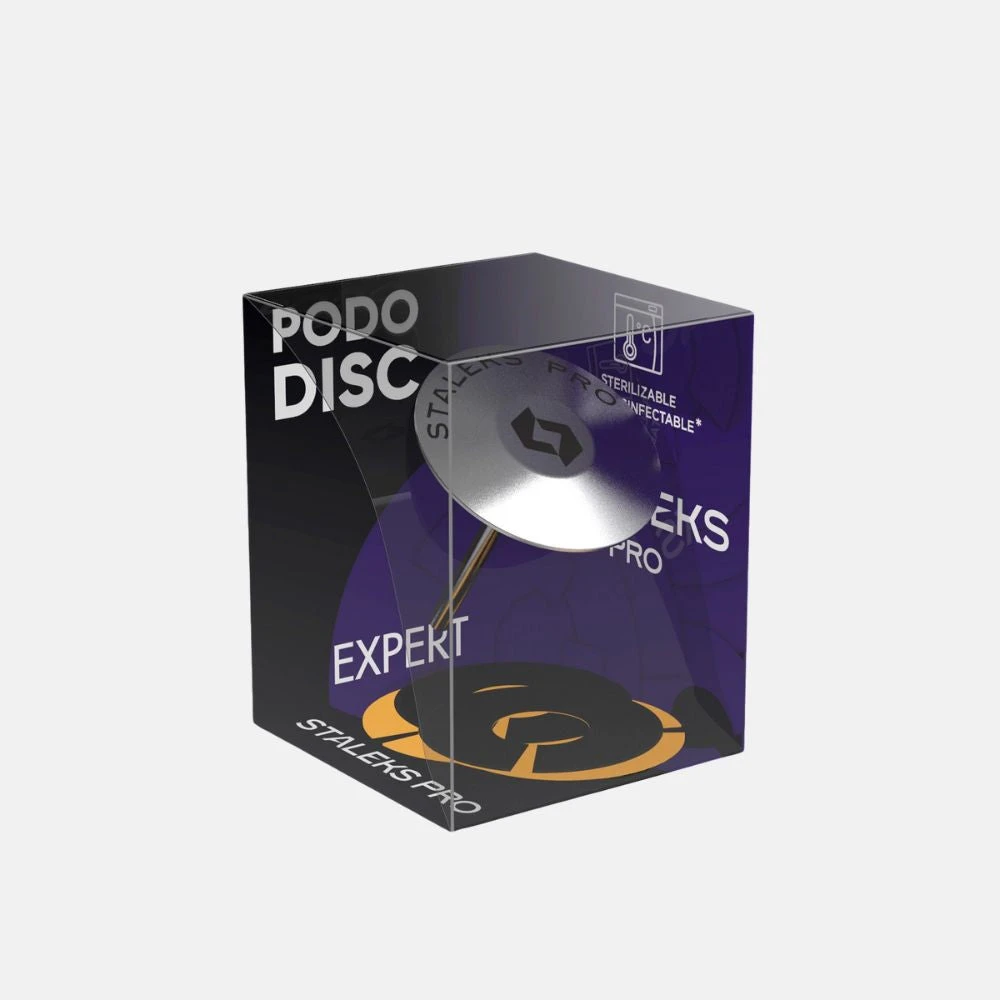 Disco metálico de acero inoxidable con forma de paraguas, más ligero, por lo que permite trabajar de manera más cómoda. Al tener más volumen en el centro del disco es perfecto para insistir en zonas con callosidades y ayudar a reducirlas. Se puede esterilizar en autoclave y en esterilizador de bolas de cuarzo.