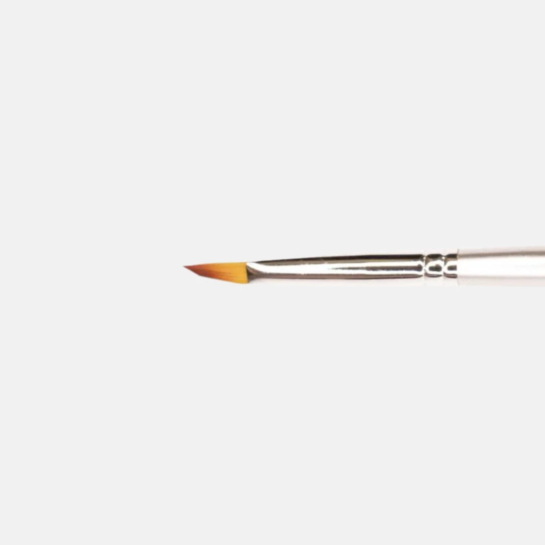 Pincel de pelo sintético con un ángulo oblicuo para facilitar el trabajo de la sonrisa en la manicura francesa, además de permitir una aplicación fácil y rápida de los geles constructores.