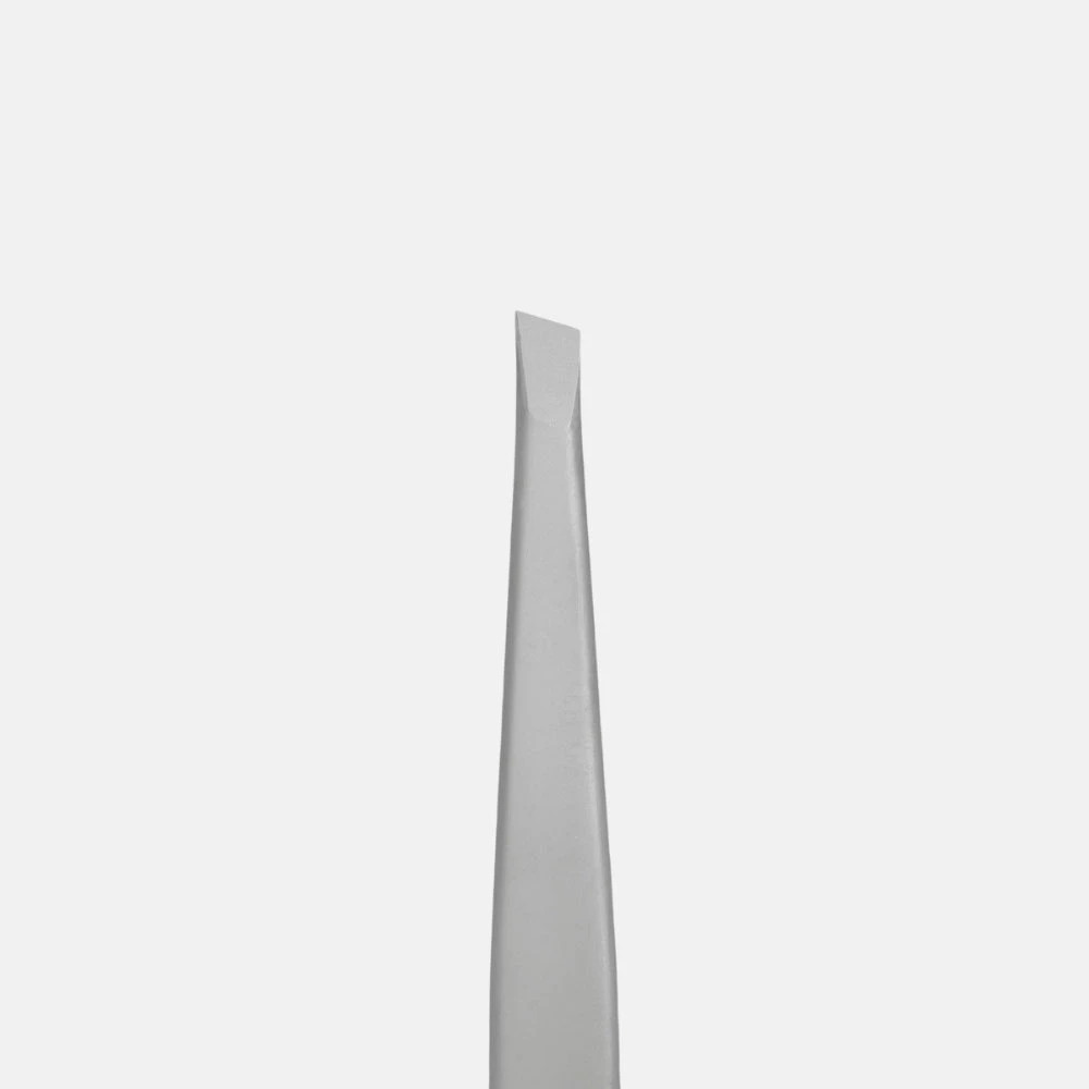 Pinza para depilación de cejas fabricada en acero inoxidable de grado médico. La superficie de agarre es mayor y los bordes más finos lo que proporciona un agarre perfecto para eliminar todo tipo de vello.