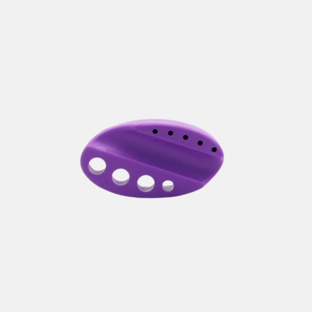 Este soporte es de silicona y cuenta con varios agujeros pensados para apoyar los vasitos de pigmento desechables. Además, dispone de una hendidura central que te permitirá apoyar el lápiz de micropigmentación. En la parte superior encontrarás 3 pequeños agujeros donde podrás introducir microcepillos para tenerlos accesibles durante el servicio.