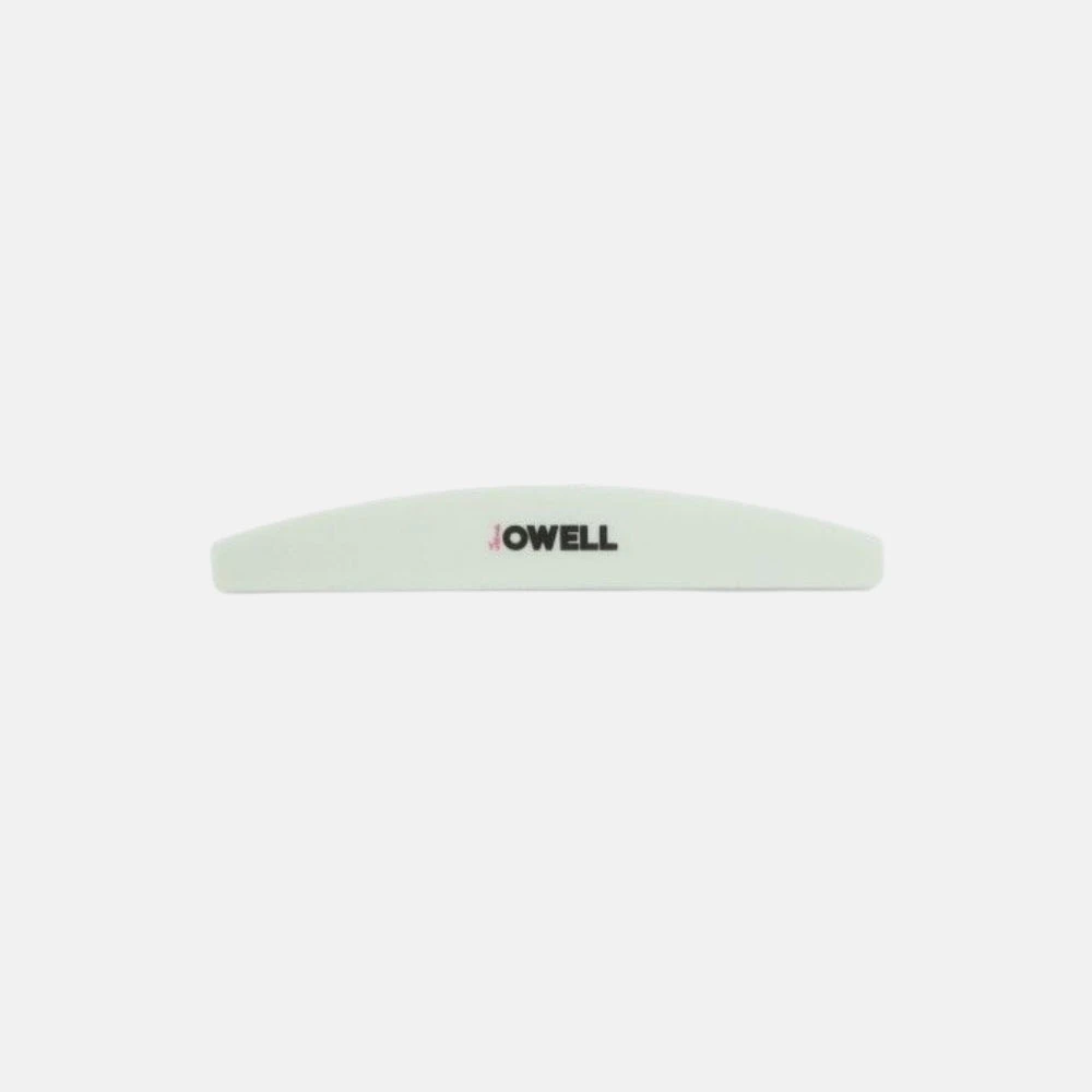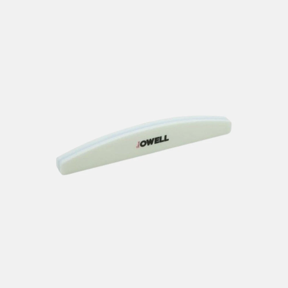 Pulidora que permite preparar las uñas antes del esmaltado permanente y pulir las uñas construidas con acrílico, gel o polyacrygel. Ambas caras de la pulidora son de grano 180. Gracias a su forma de media luna permite pulir la zona de la cutícula con más facilidad.