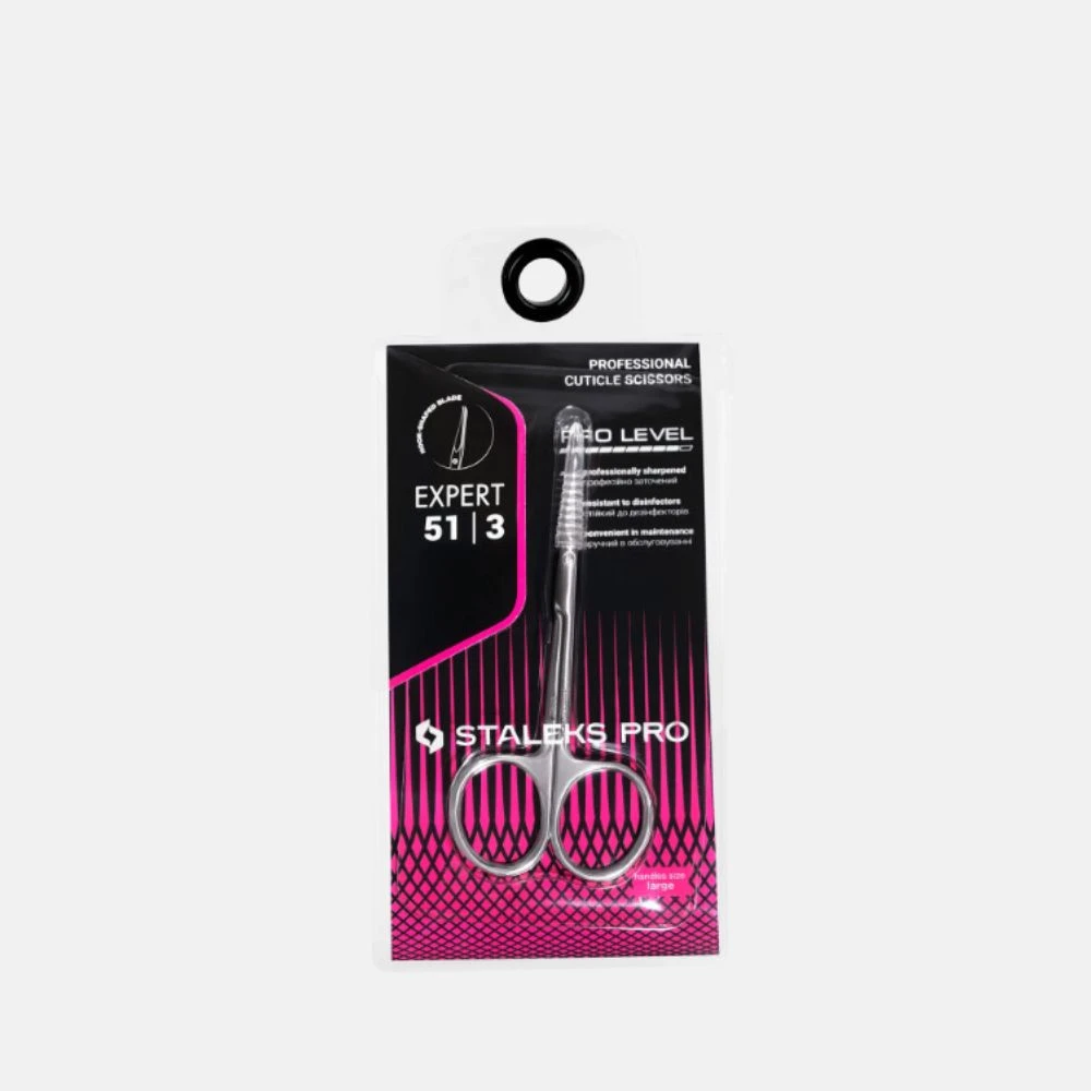 Tijera de acero inoxidable de alta calidad para retirar la cutícula, su curva con punta de gancho sigue la línea de la cutícula para realizar un corte preciso y limpio. Producto resistente a la esterilización en calor seco y autoclave.